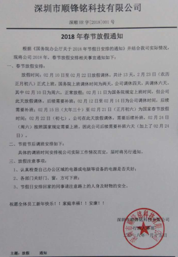 2018年春節(jié)放假通知