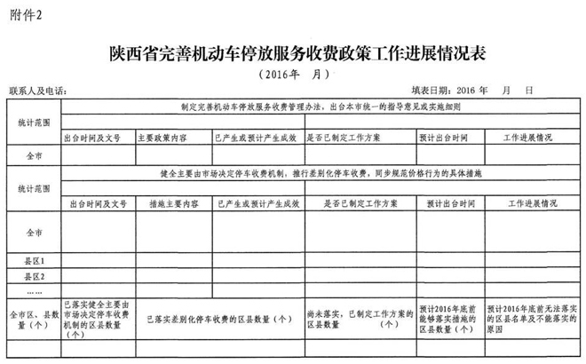 2.陜西省完善機(jī)動車停放服務(wù)收費(fèi)政策工作進(jìn)展情況表