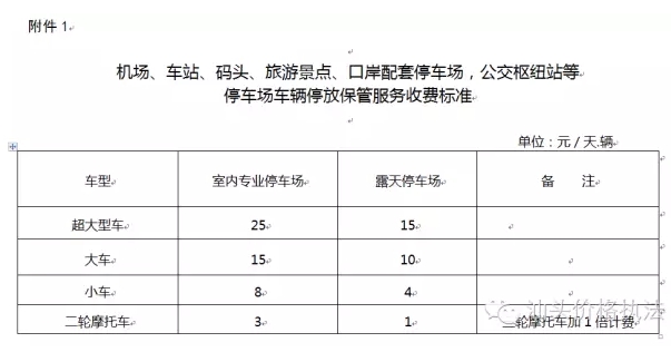 1.機(jī)場、車站、碼頭、旅游景點(diǎn)、口岸配套停車場,公交樞紐站等停車場機(jī)動車停放保管服務(wù)收費(fèi)標(biāo)準(zhǔn)
