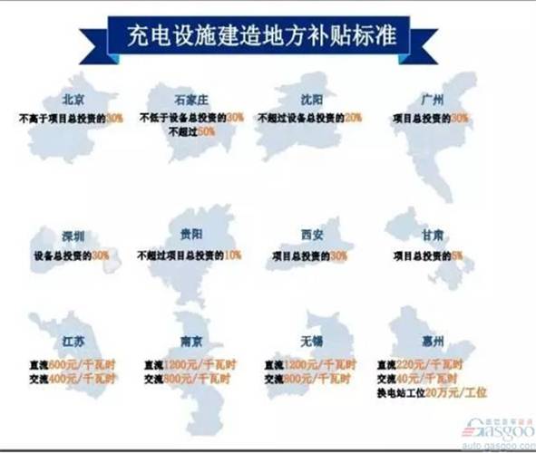 為加強(qiáng)對(duì)充電基礎(chǔ)設(shè)施建設(shè)政策支持和保障,政府大力支持,實(shí)行地方補(bǔ)貼政策。各省份不同,補(bǔ)貼標(biāo)準(zhǔn)也各異:北京、廣州、深圳等省份的補(bǔ)貼在總投資的30%,甘肅較低,約為5%;江蘇、南京、無(wú)錫等城市根據(jù)直流電和交流電給予不同程度的補(bǔ)貼。